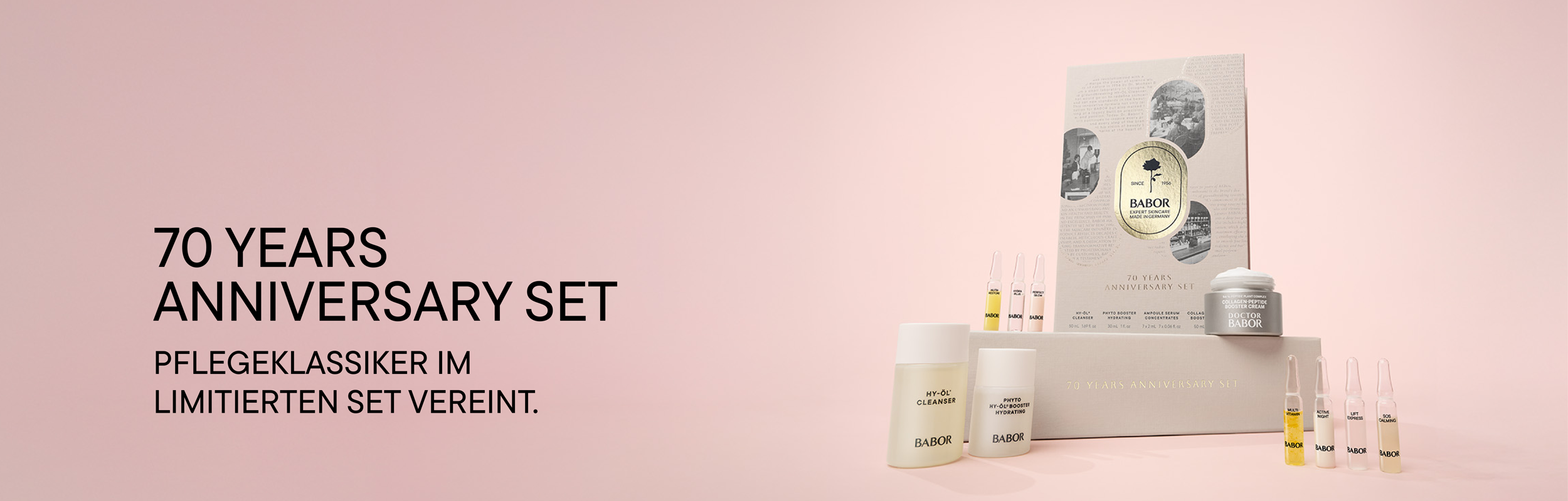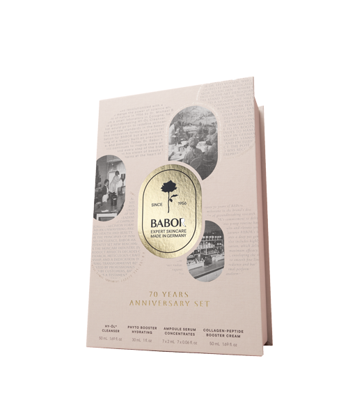 Feiere 70 Jahre BABOR mit einer exklusiven Pflegeroutine: Reinigungsikone, Ampullenkraft und Bestseller-Creme für einen sichtbar glatten, strahlenden Teint.